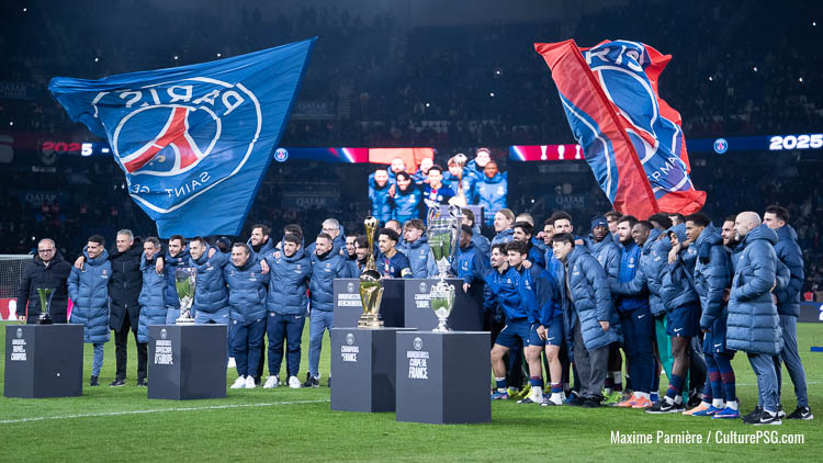 Le PSG a réalisé en 2025 la plus belle année de son histoire en remportant 6 trophées, dont la première Champions League de son histoire, ce qui lui a permis de disputer et de remporter, également pour la première fois, la Supercoupe d'Europe (13 août) ainsi que la Coupe intercontinentale (17 décembre), avec dans les deux cas une victoire aux tirs au but.