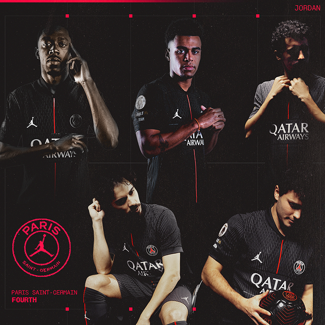 Le PSG a dévoilé officiellement ce mardi son nouveau maillot Jordan pour la saison 2025/2026. Ce quatrième maillot du PSG est noir avec une fine bande verticale rouge et est d'ores et déjà disponible sur la boutique en ligne du club.