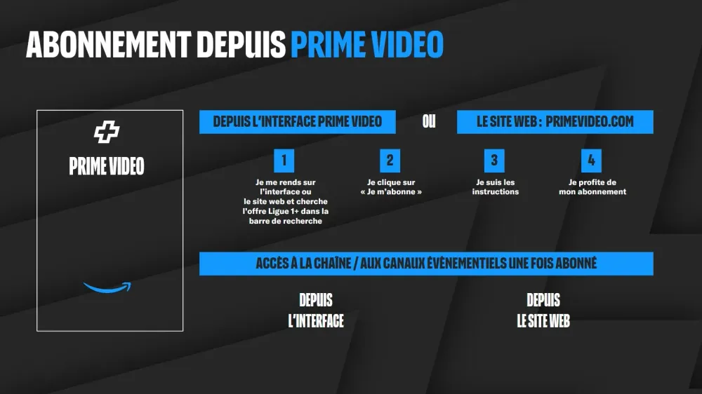Le moyen le plus simple est de passer directement par le site de Ligue 1+ (https://plus.ligue1.com) ou l'application Ligue 1+, disponible sur AndroidTV, l’App Store, Google Play Store, les téléviseurs Samsung et sur FireTV d’Amazon.